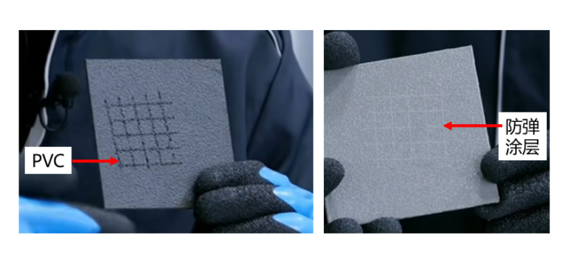 Compared with traditional PVC coatings, the ballistic-resistant coating offers superior scratch resistance (tested by scratching the surface with a 1mm needle).