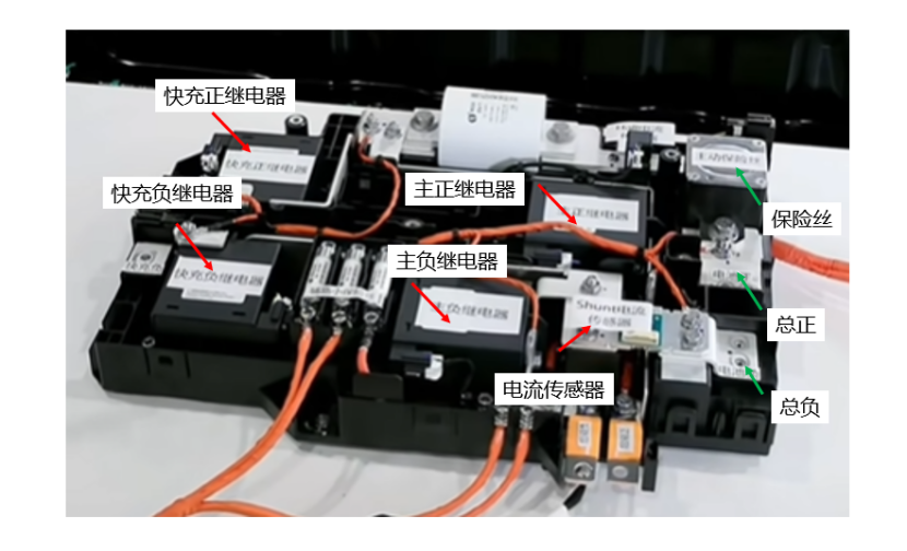 The attached image displays the main internal components of the BDU. The active fuse here can cut off the electrical connection within 4 milliseconds via a built-in pyrotechnic switch, protecting the battery pack in the event of an abnormal short circuit.