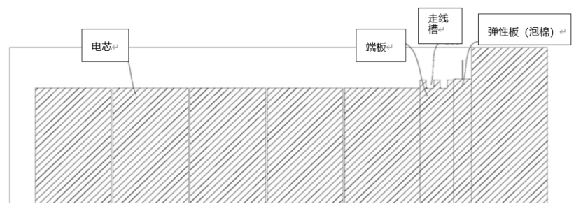 When the cell module is in an unexpanded state, the maximum gap between the end plate and the cell side surface is less than 10mm (6mm as cited in the patent), and this gap is exclusively for placing the foam.